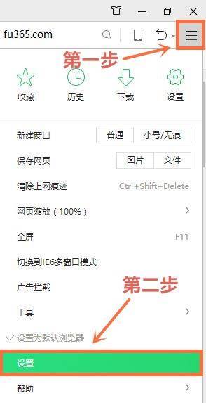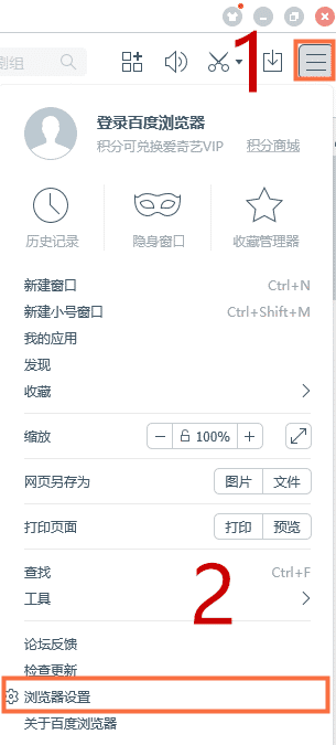 1、 打开百度浏览器,菜单-浏览器设置,如图所示: