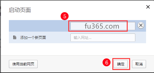 3、在 启动页面 里 输入(www.fu365.com)或复制,确定即可。