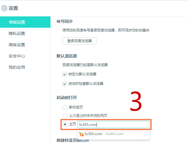 2、在主页内输入 (www.fu365.com)或复制 ,设置自动保存。