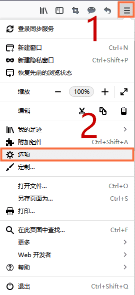 1、打开Firefox浏览器,打开菜单—选项,如图所示: