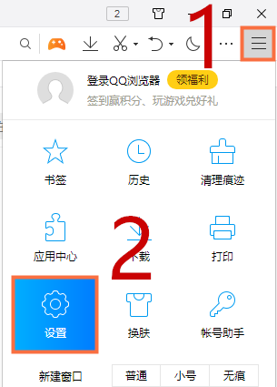 1、 打开QQ浏览器,点击菜单-设置,如图所示: