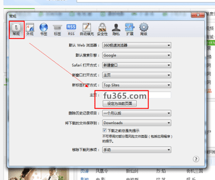 2、选择常规选项,在地址栏里输入 (www.fu365.com)或复制
