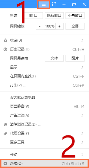 1、打开浏览器,打开菜单-选项/设置,如图所示: